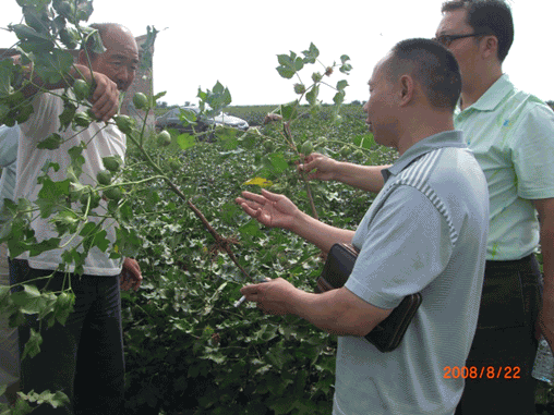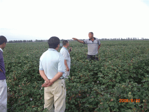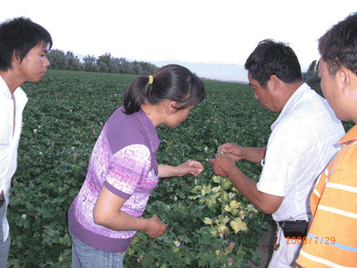 圖1:公司技術(shù)員到試驗地里指導(dǎo)