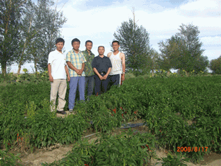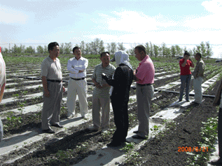 圖1:農(nóng)六師農(nóng)技推廣站領導親自到試驗地里考察 圖2:公司技術員與農(nóng)六師共青團負責人在試驗地里交流