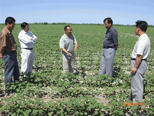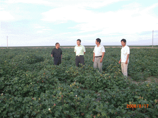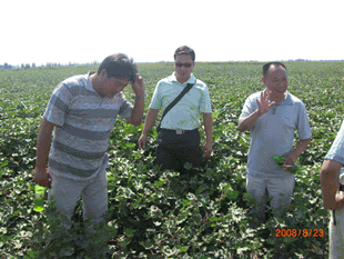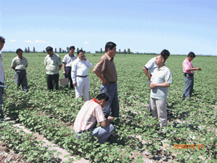 圖3:公司技術員與農(nóng)六師共青團在察看棉田 圖4:察看和豐縣私人農(nóng)場