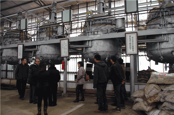 圖7:與會者在參觀華宏農(nóng)科的改良劑生產(chǎn)車間