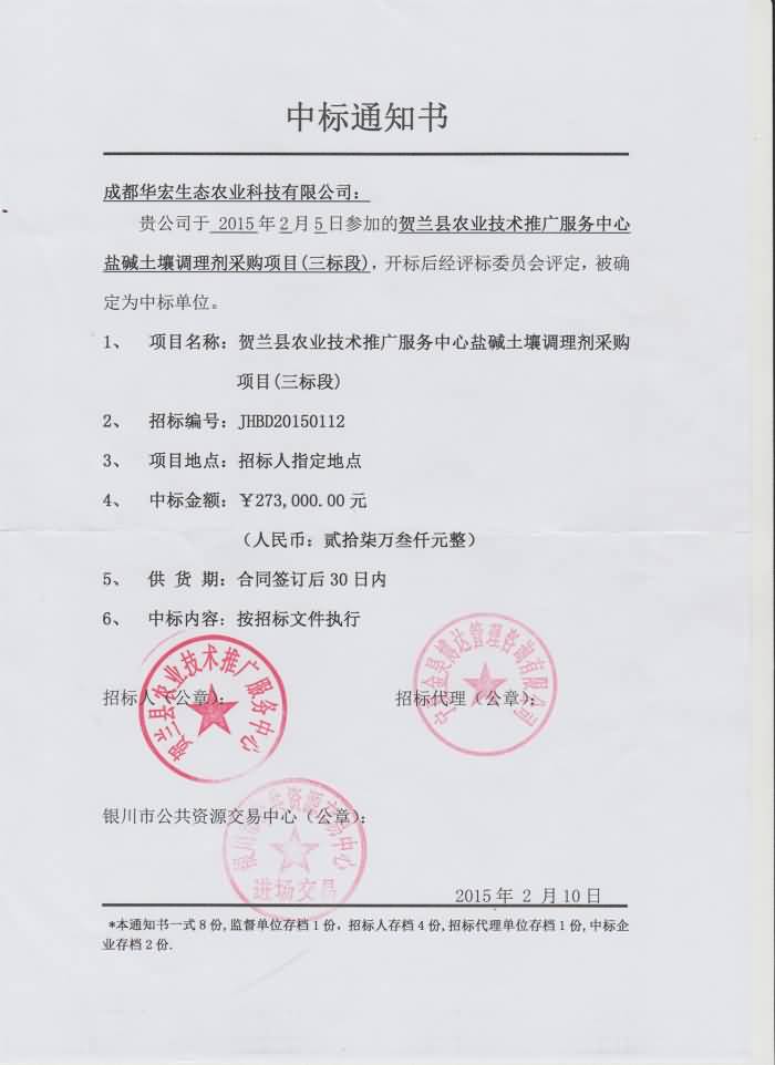 “施地佳”土壤調理劑在寧夏賀蘭縣中標