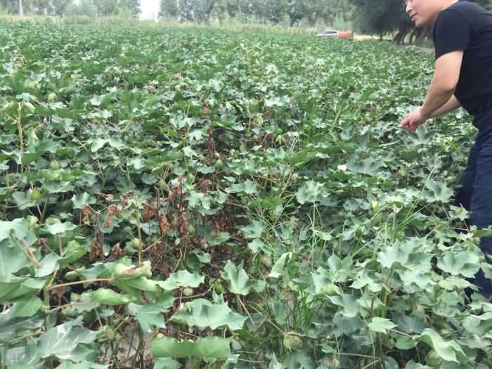 新疆生產(chǎn)建設(shè)兵團(tuán)第八師142團(tuán)16連棉花種植三十多年,棉花枯萎、黃萎病嚴(yán)重2010年棄耕,我們與種植大戶商量自2011年開始,采用兵團(tuán)第八師142團(tuán)16連棉花種植三十多年,棉花枯萎、黃萎病嚴(yán)重2010年棄耕,我們與種植大戶商量自2011年開始,采用水肥一體化改良土壤,生物防病,當(dāng)年見效棉花防病效果與對照田達(dá)到70%,平均畝產(chǎn)達(dá)300公斤,我們連續(xù)實施至今第六年,今天到地里察看整個1000畝未發(fā)現(xiàn)病株,預(yù)測平均畝產(chǎn)達(dá)400公斤。隔壁田塊發(fā)病率達(dá)40%,預(yù)測產(chǎn)量250公斤。事實證明,土壤改良棉花頑癥治療不是難題!改良土壤,生物防病,當(dāng)年見效棉花防病效果與對照田達(dá)到70%,平均畝產(chǎn)達(dá)300公斤,我們連續(xù)實施至今第六年,今天到地里察看整個1000畝未發(fā)現(xiàn)病株,預(yù)測平均畝產(chǎn)達(dá)400公斤。隔壁田塊發(fā)病率達(dá)40%,預(yù)測產(chǎn)量250公斤。事實證明,土壤改良棉花頑癥治療不是難題!