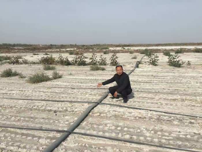 據(jù)了解,新疆溫宿縣古勒阿瓦提鄉(xiāng)三萬畝荒地自2005年起由當?shù)氐囊晃痪S吾爾族老板承包,之后的十一年時間里,該老板通過轉(zhuǎn)租等方式嘗試對鹽堿地進行改良,然而卻一直未能改良成功。正當諸多的承包商面對這么大面積的荒地一籌莫展時,轉(zhuǎn)機卻正在悄然來臨。2015年,受承包鹽堿地的一位李老板的邀請,成都華宏生物科技有限公司在李老板所承包的1000畝鹽堿地中的200畝中進行改良試驗。