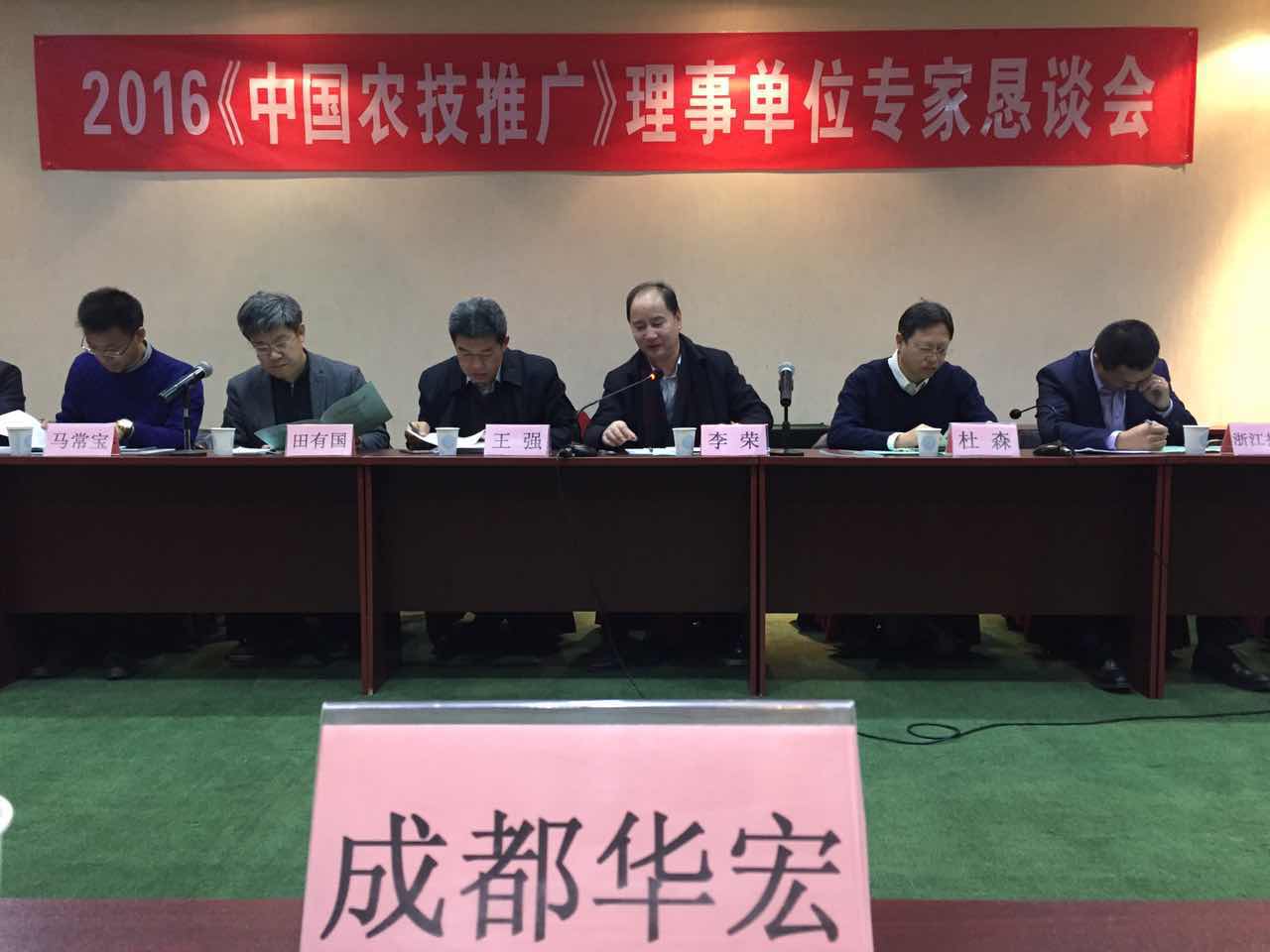 2016年12月3—4日,由全國農(nóng)技推廣中心《中國農(nóng)技推廣》雜志社、中國農(nóng)業(yè)技術(shù)推廣協(xié)會主辦的“2016微生物肥料推廣應(yīng)用交流暨《中國農(nóng)技推廣》理事單位座談會在北京召開,來自全國200個專家、學(xué)者、涉農(nóng)科技企業(yè)代表和各理事單位代表參加了座談會,成都華宏生物科技有限公司楊洋副總經(jīng)理蒞臨座談會。